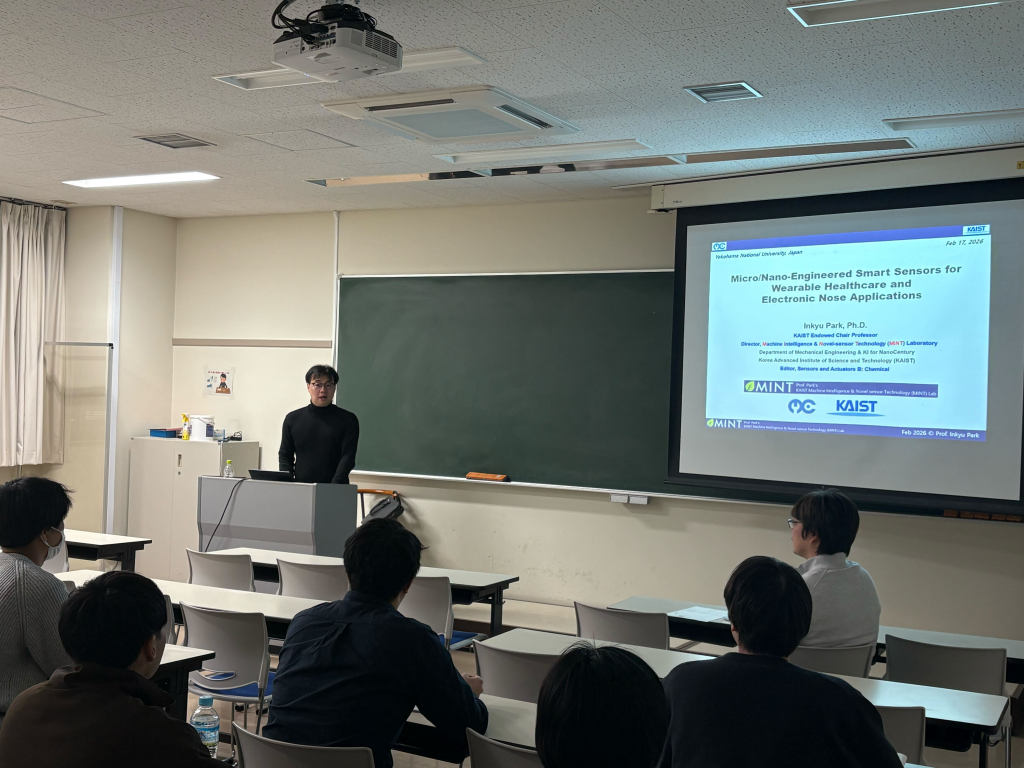 講演では、「Micro/Nano-Engineered Smart Sensors for Electronic Nose and Wearable Healthcare Applications」をテーマに、最新のナノ技術を用いたスマートセンサーデバイスや、次世代のヘルスケアモニタリング技術についてご講演いただきました。最先端の研究成果に触れる貴重な機会となり、参加した学生との間でも活発な質疑応答が行われました。